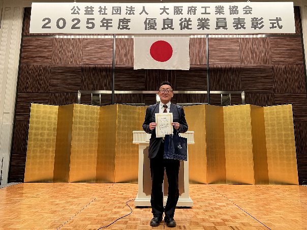 弊社の社員が、公益社団法人ブック メーカー オリンピック府工業協会主催の「2025年度 優良従業員表彰式」にて優良従業員として、表彰されました。この表彰は同協会が1962年以来毎年継続して実施しており、同一企業に10年以上勤務し、事業所代表者より推薦を受けた者に対し選考・表彰が行われます。